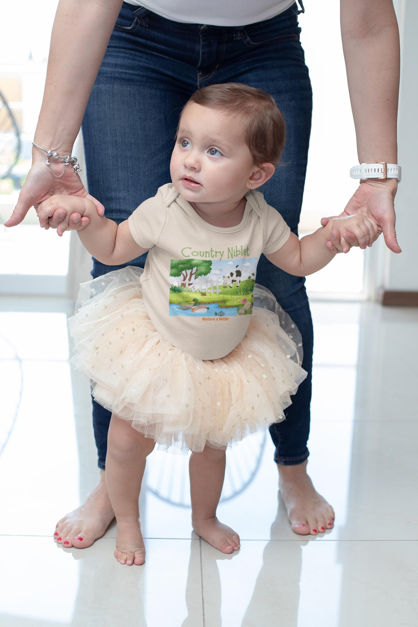 Organic cotton baby bodysuit Country farm animals cute colorful eco-friendly gender neutral rural scene